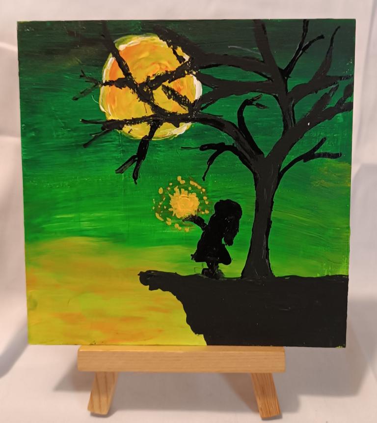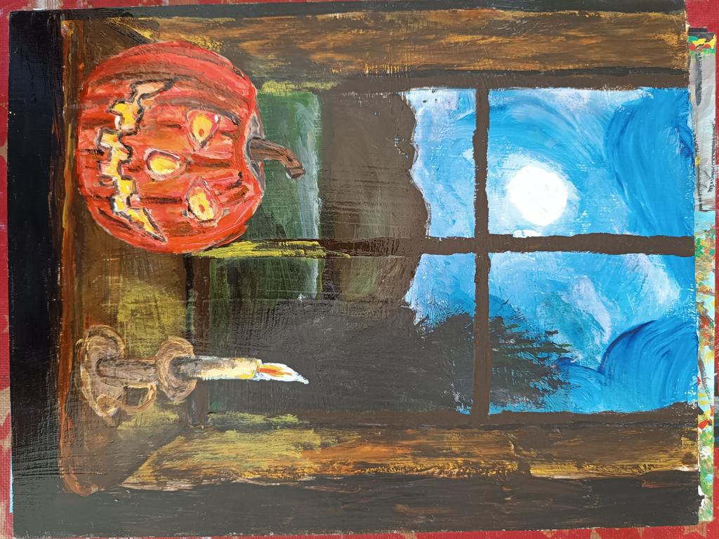 beleuchteter Kürbis beschienen von Kerze und Mondlicht